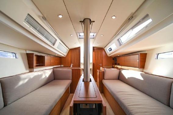 - White hull sides in main cabin and vinyl lined hull sides in forward and aft cabins.