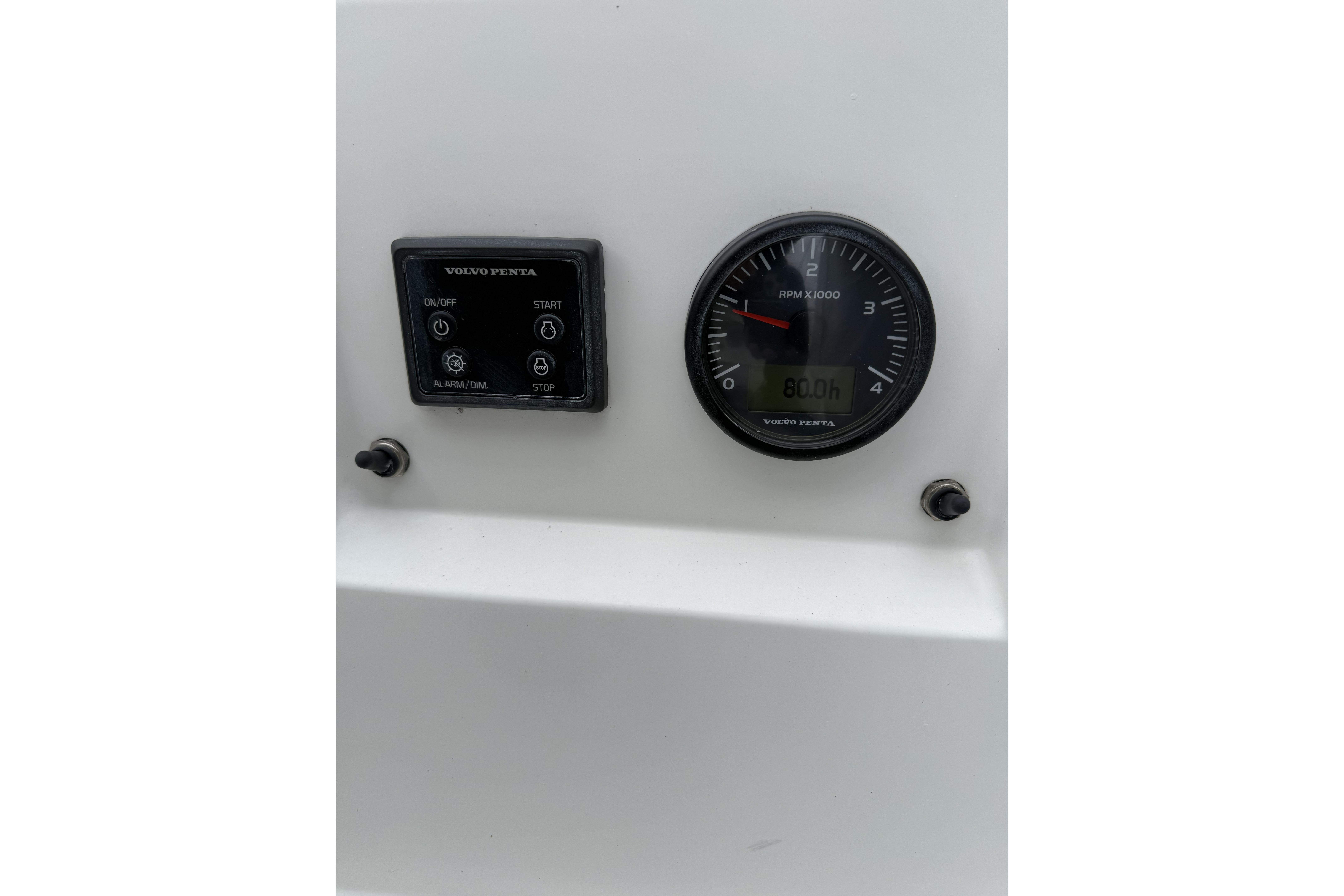 - Engine panel recessed in the cockpit with acrylic protection including RPM gauge, hour meter and alarms for oil pressure, low voltage and water temperature.