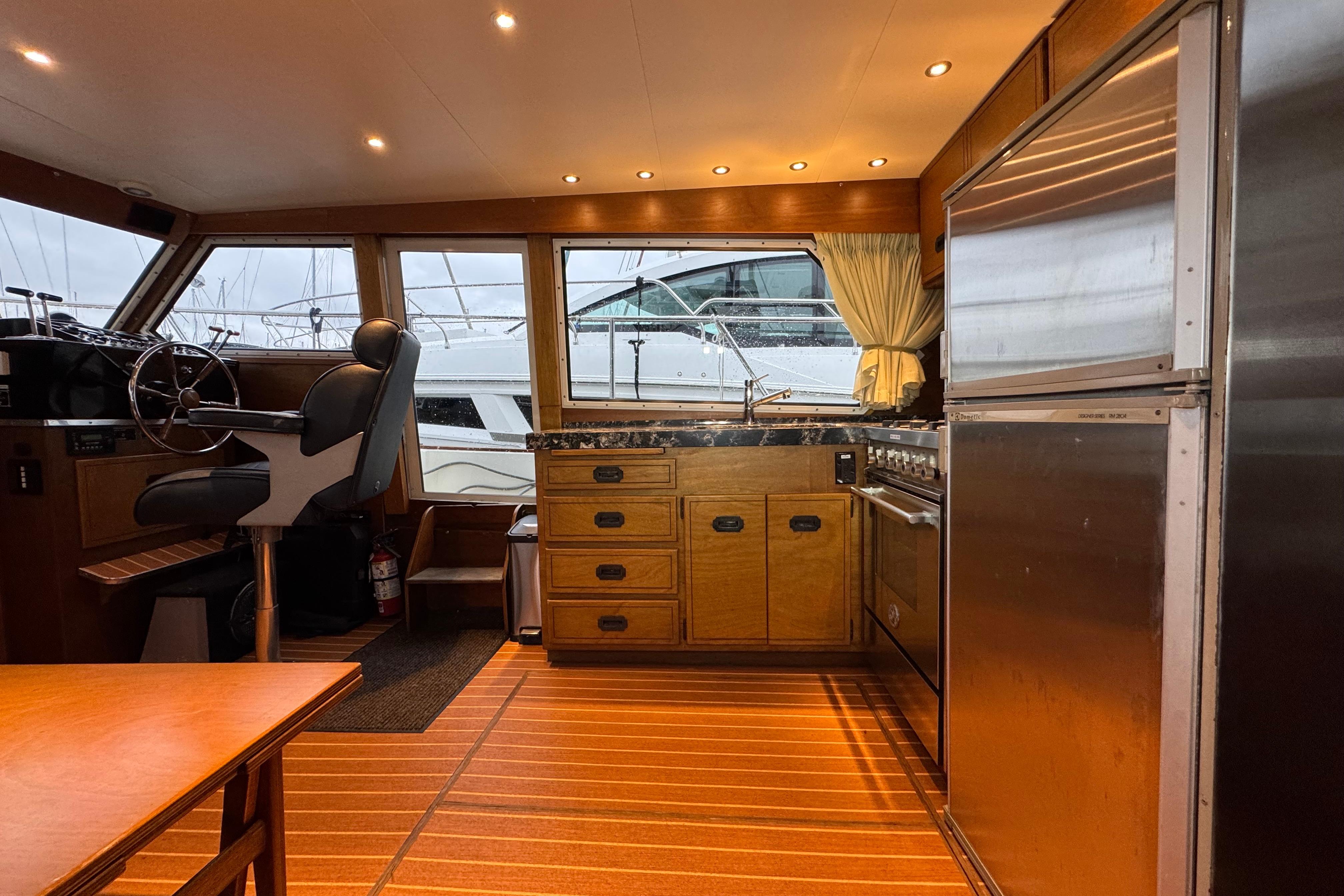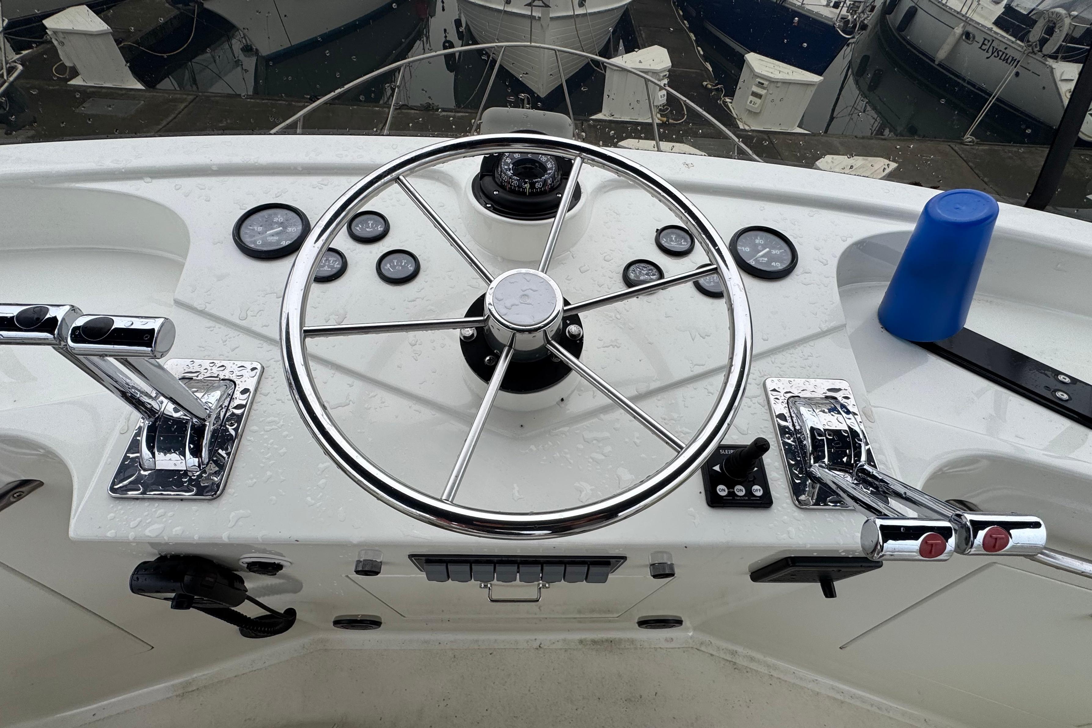 Flybridge is always a favored spot with excellent visibility from a protected helm.
