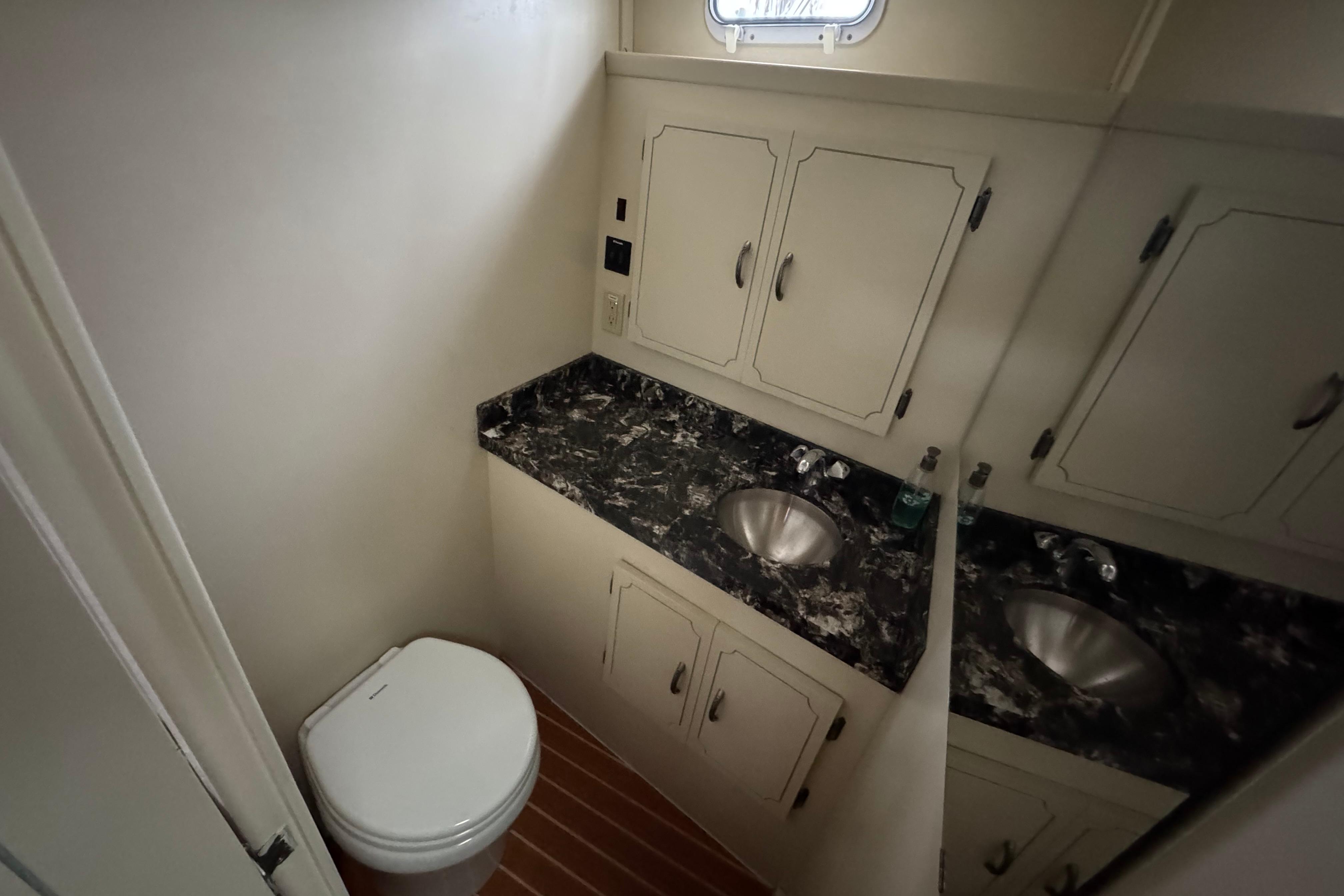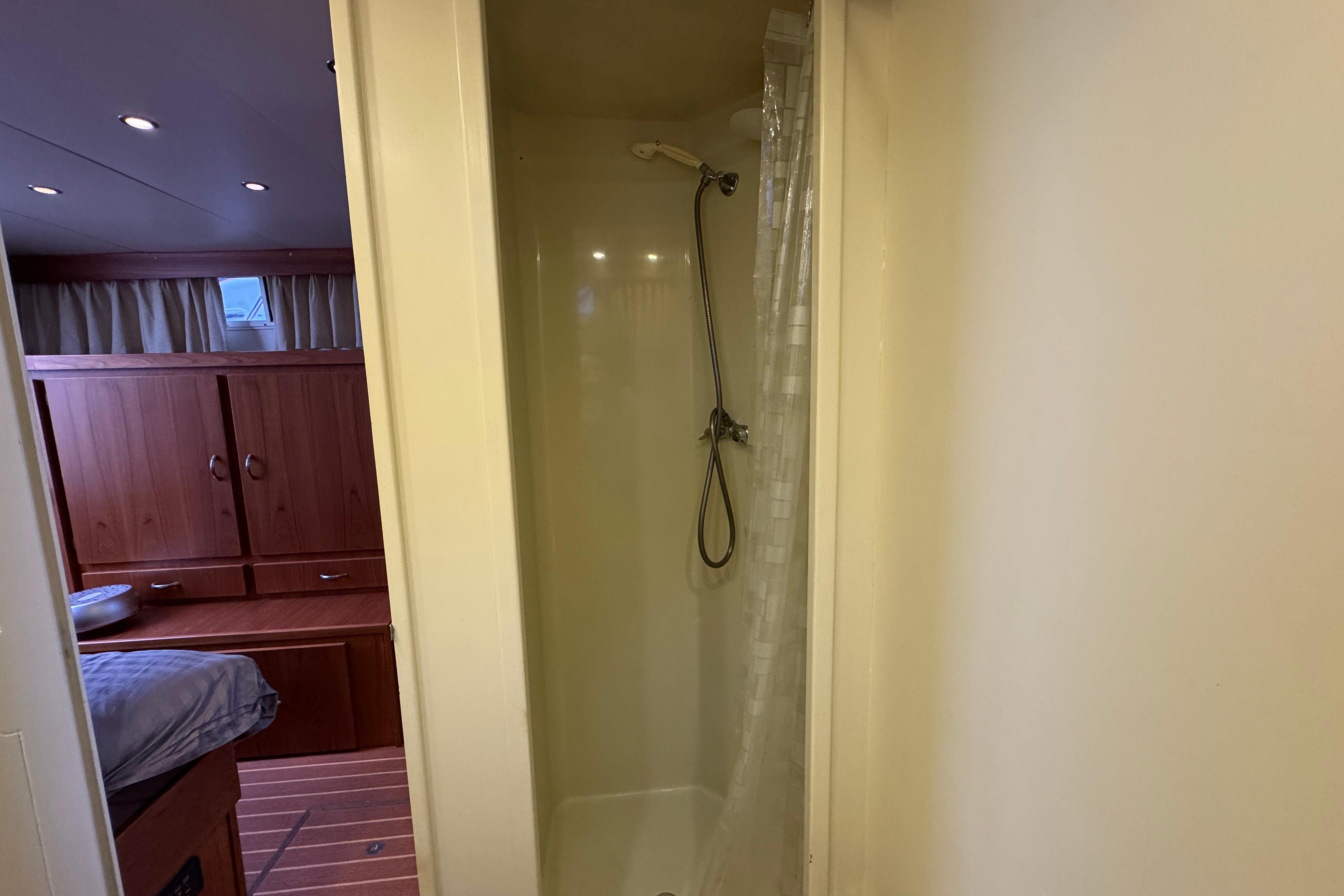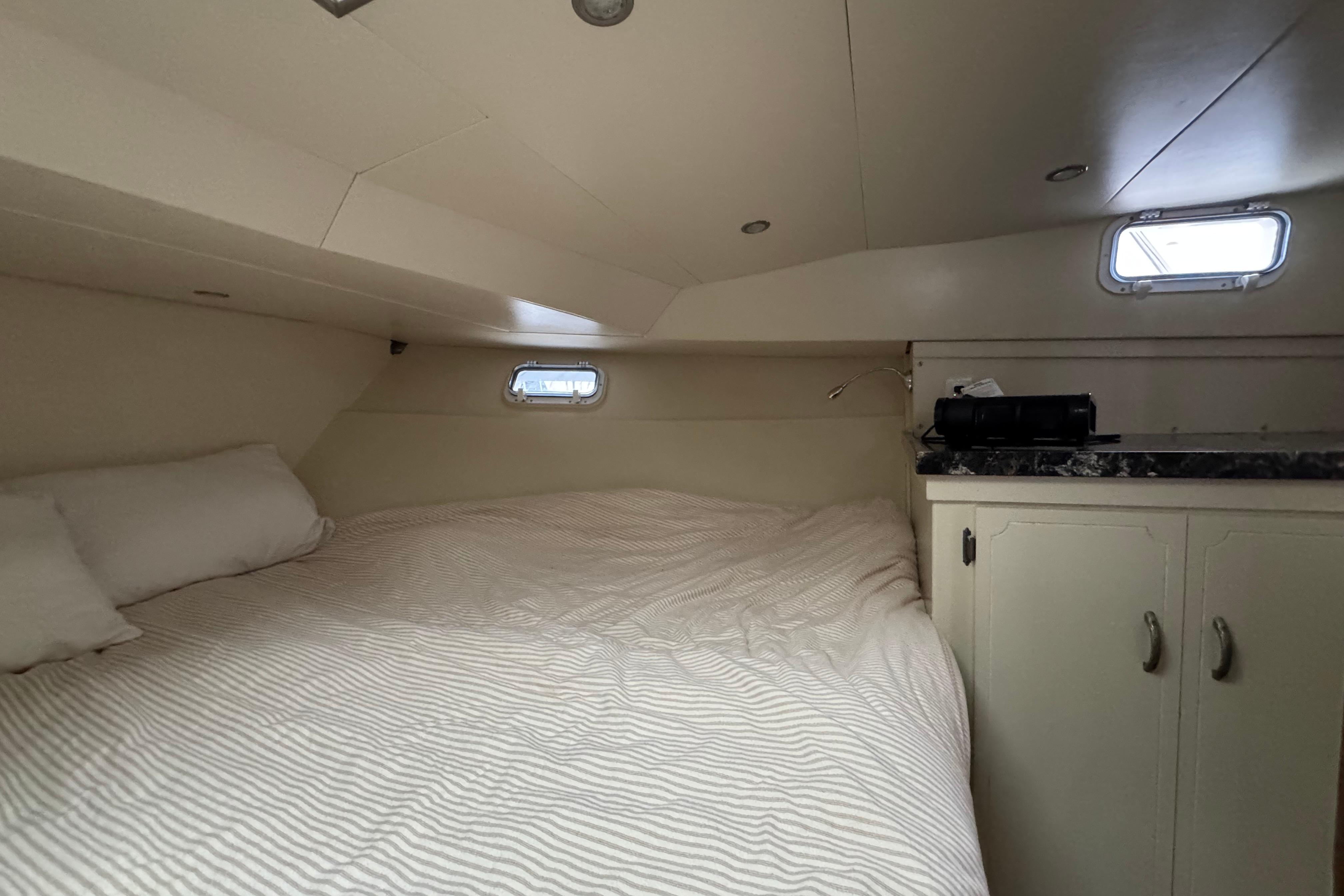 - Forward guest stateroom V berth configured as two singles or with drop in cushion creating a large sleeping area