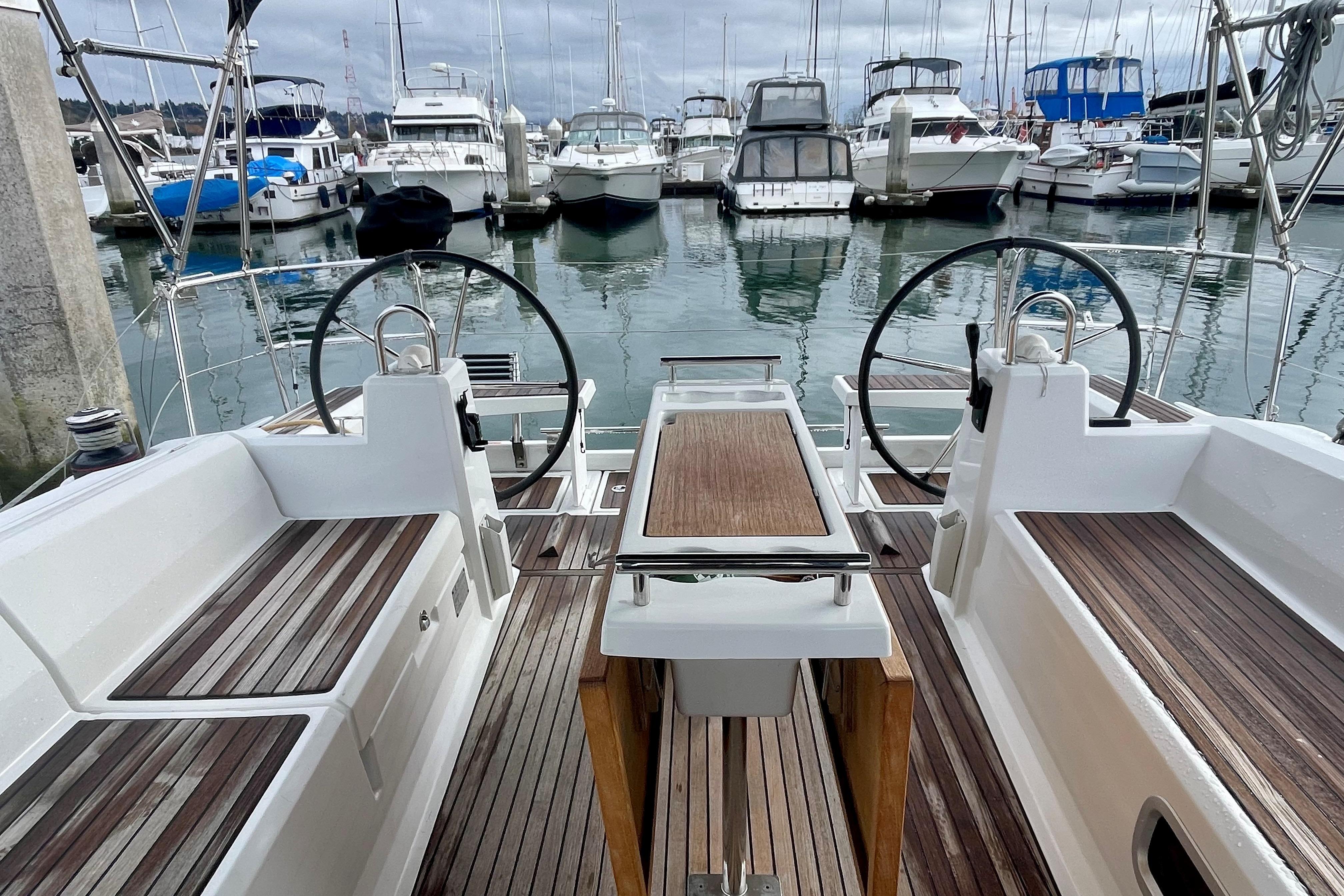 Wide side decks and a generous cockpit layout allow for ease of moving about while under sail as well as an enjoyable space for hanging out while at rest.