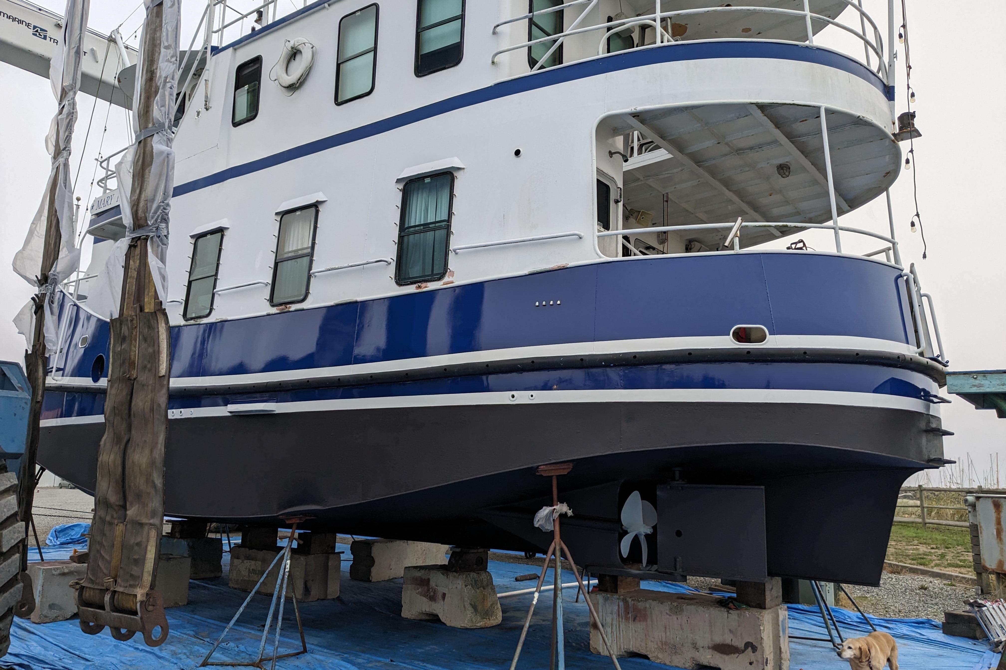 - Hull repairs include area under the washing machine, starboard side under rubber rub rail and area near the anchor support platform