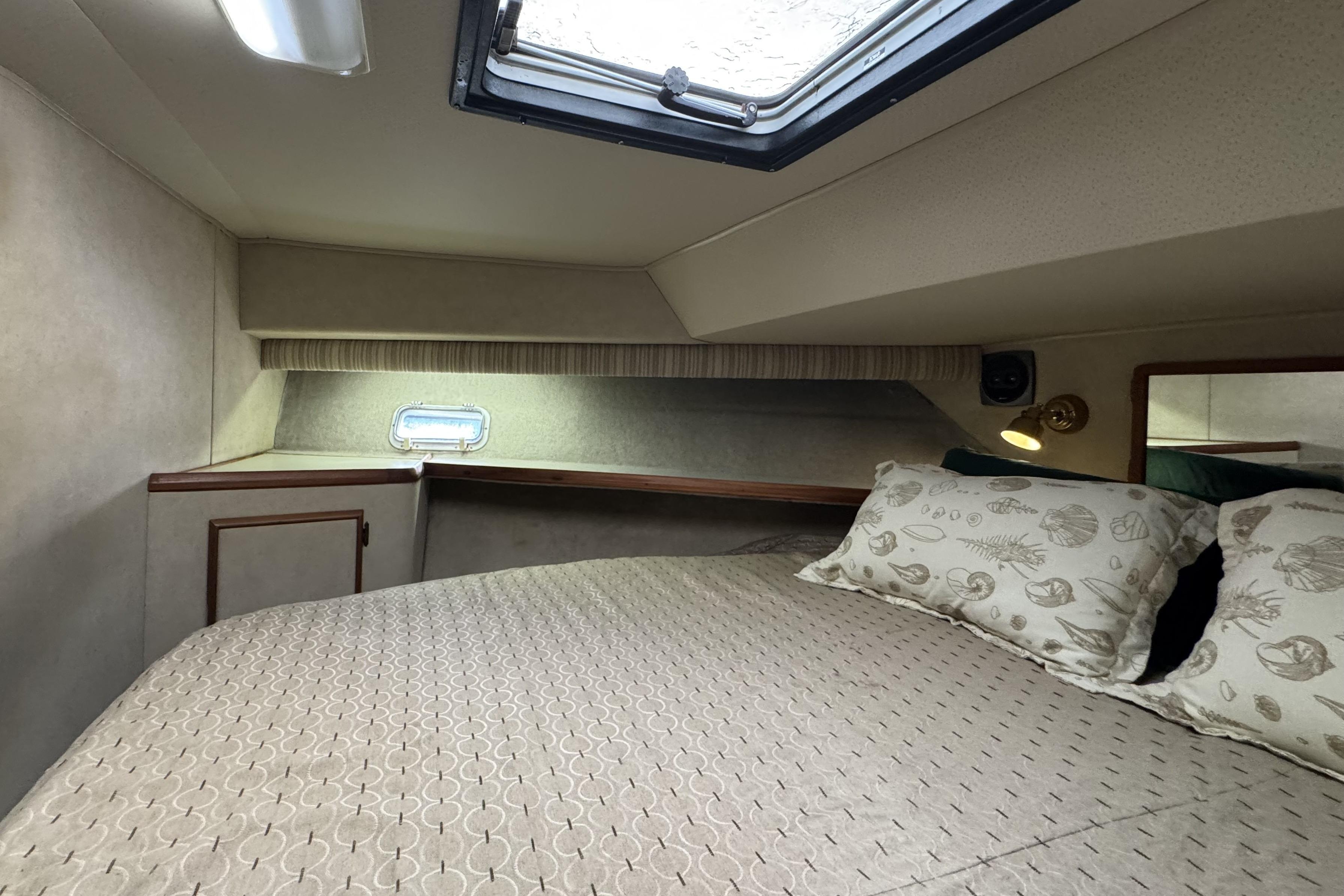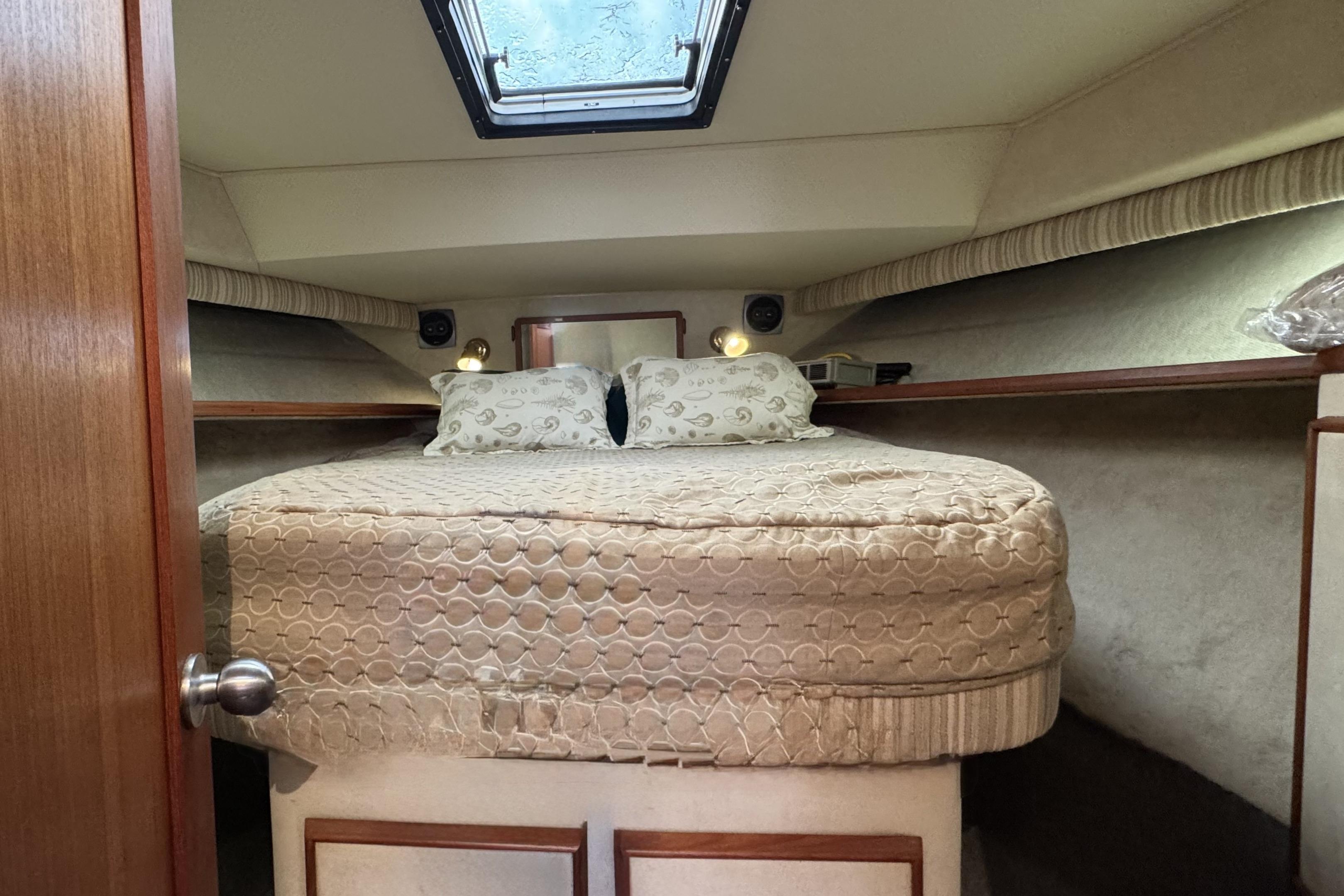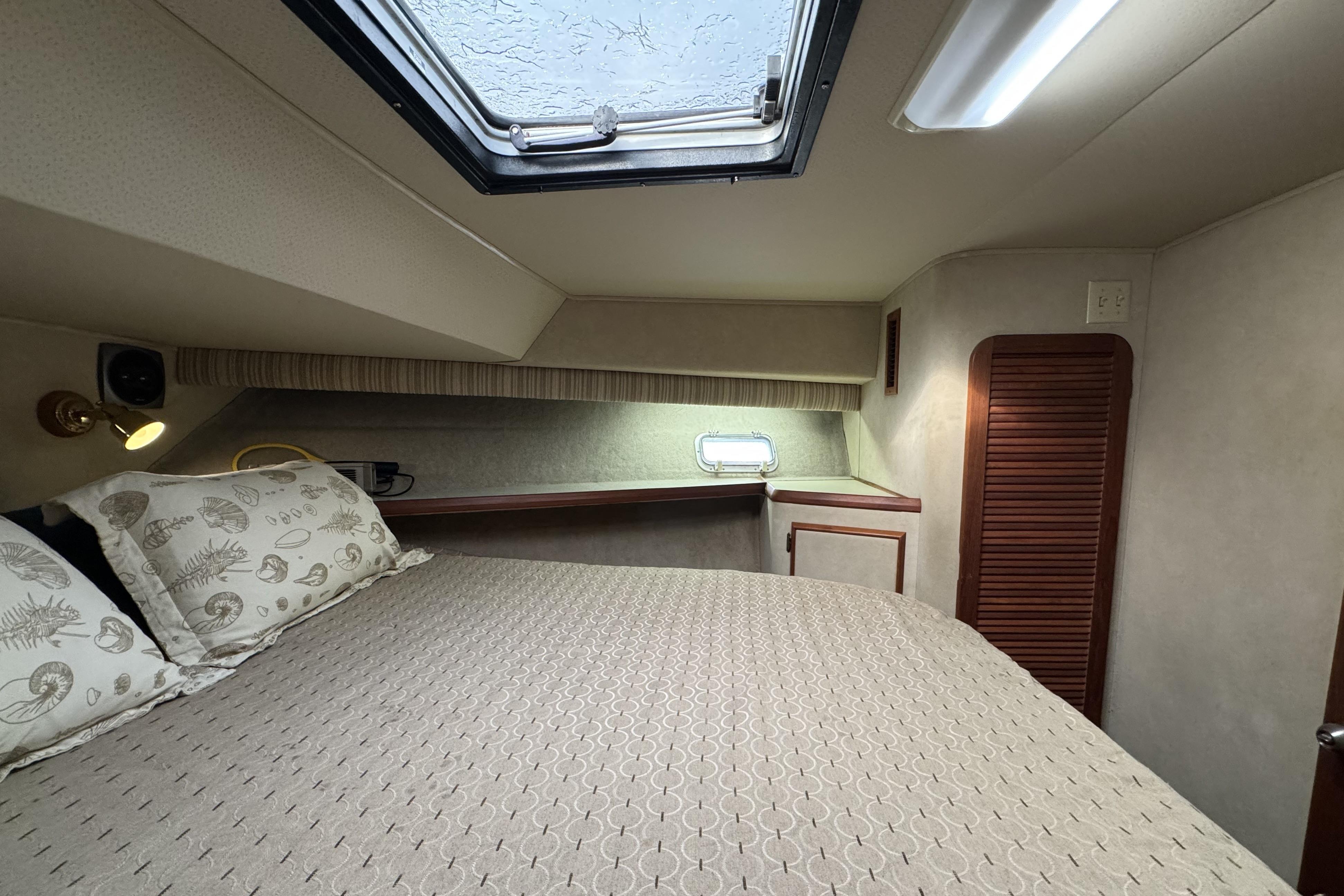 - Centerline queen berth in forward stateroom, storage closet and over head hatch.