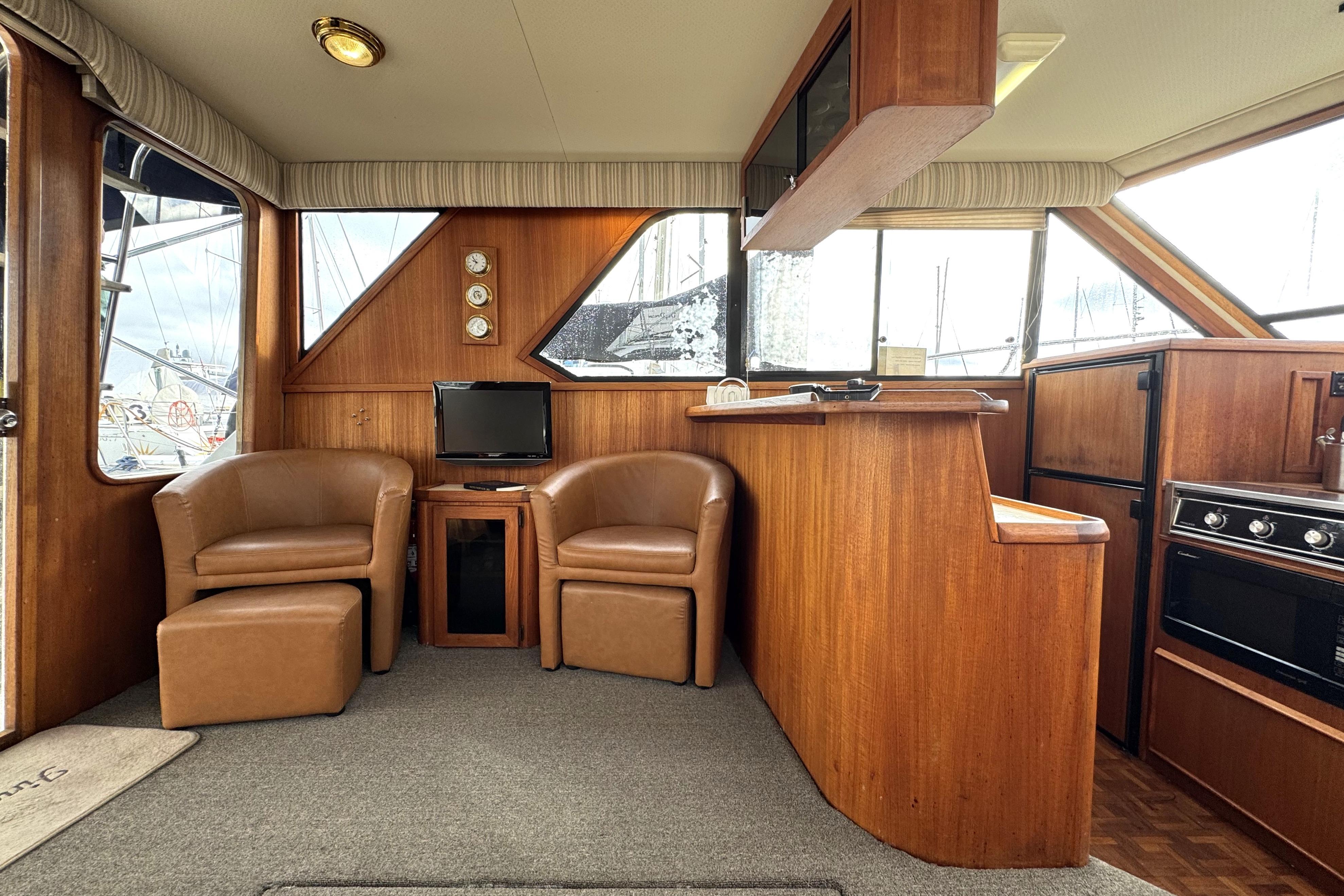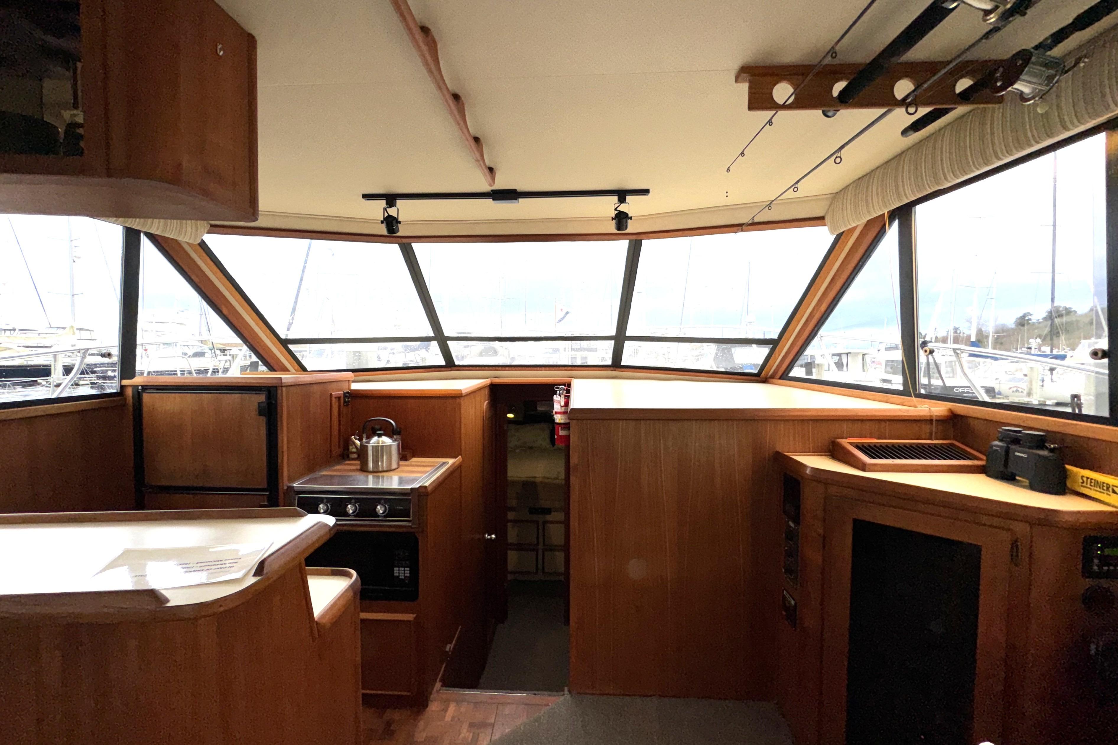 - Lexan door leads out to a large cockpit with Dickenson Marine BBQ