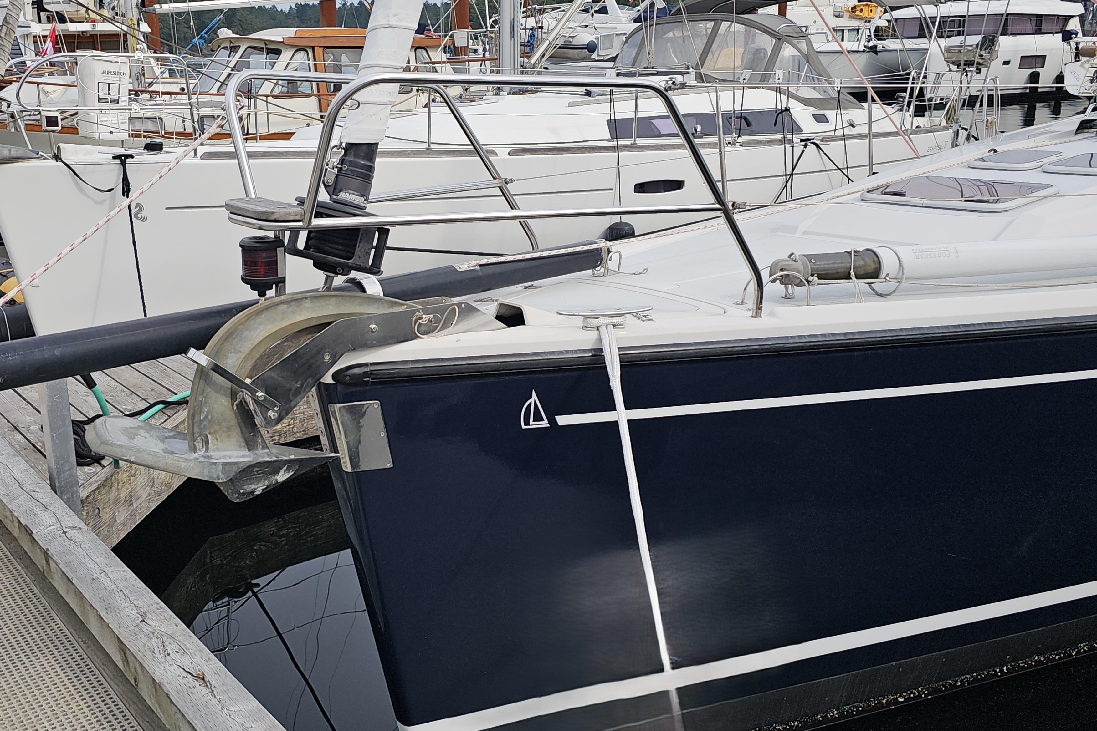 - 44lb Rocna Vulcan anchor on bow roller w/ 160ft 5/16" G4 Acco chain spliced to 220ft 5/8" nylon rode