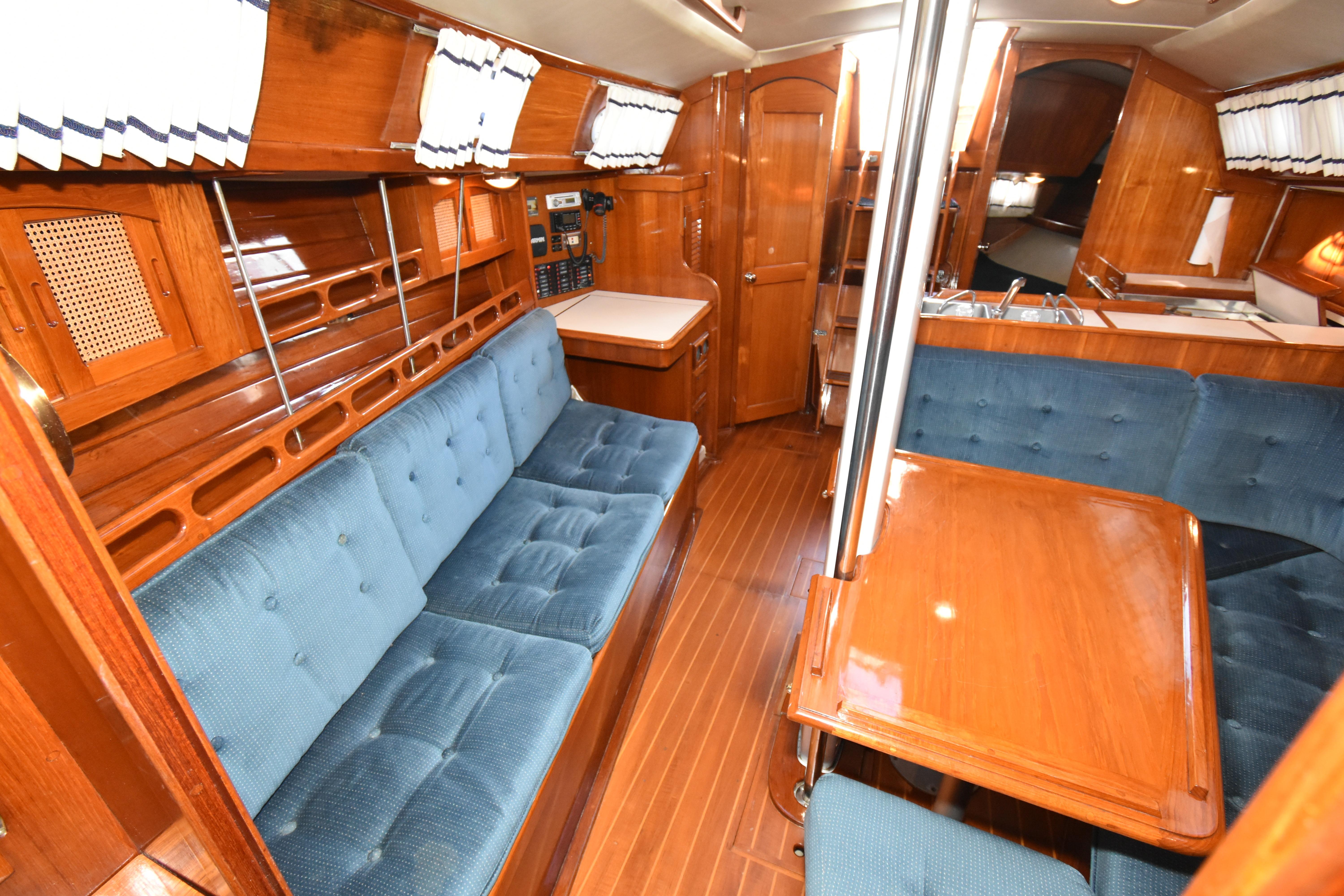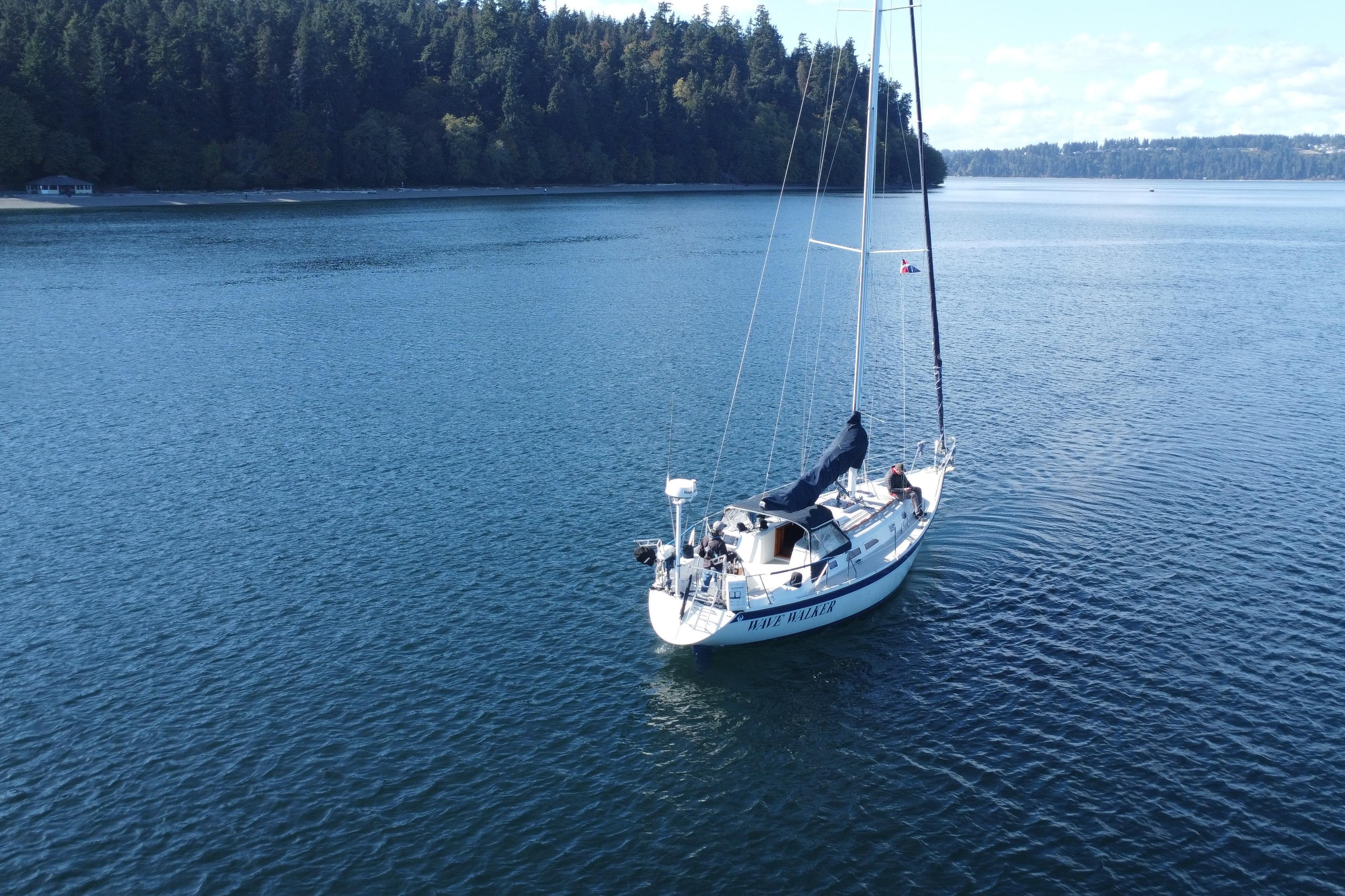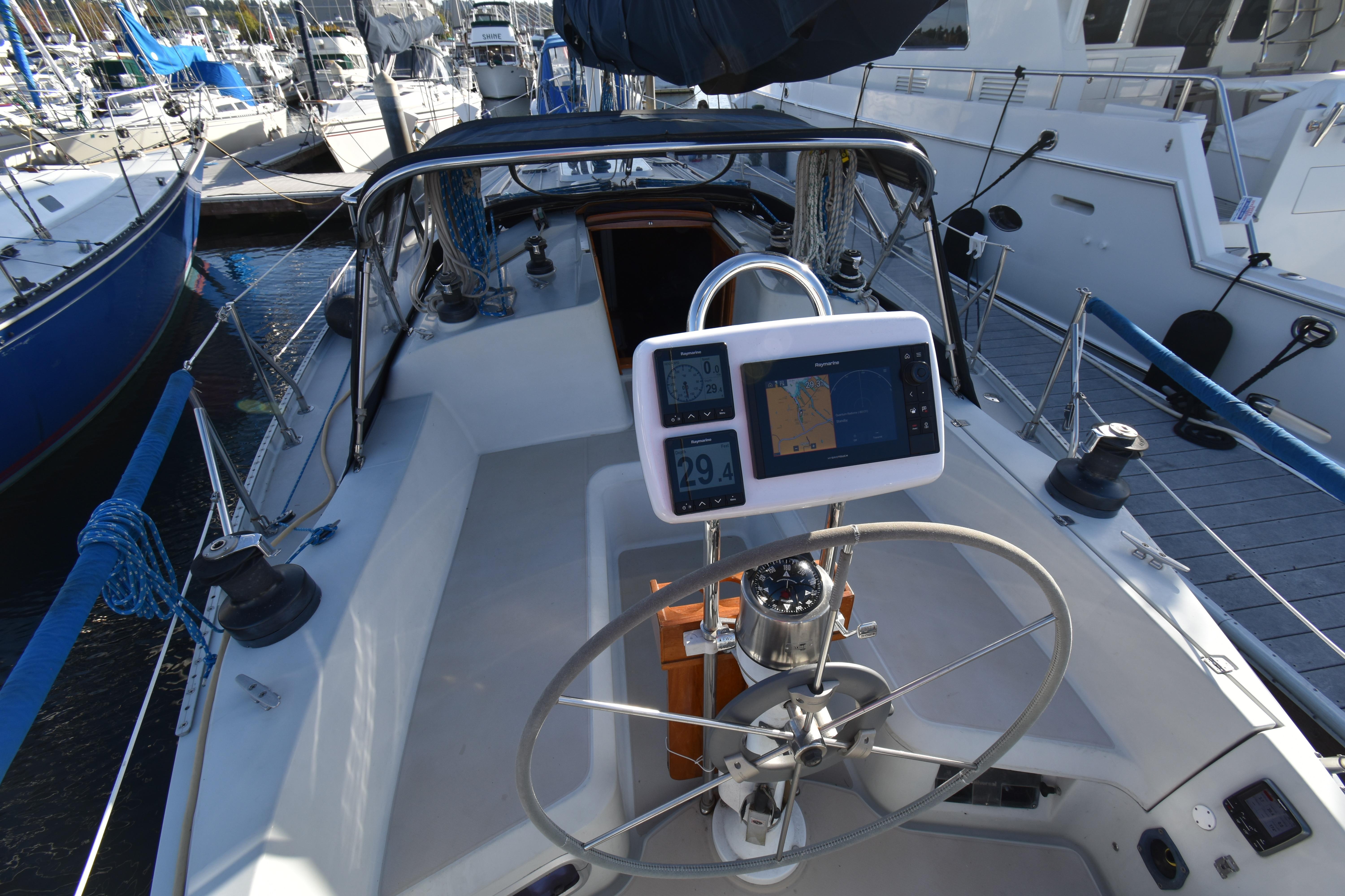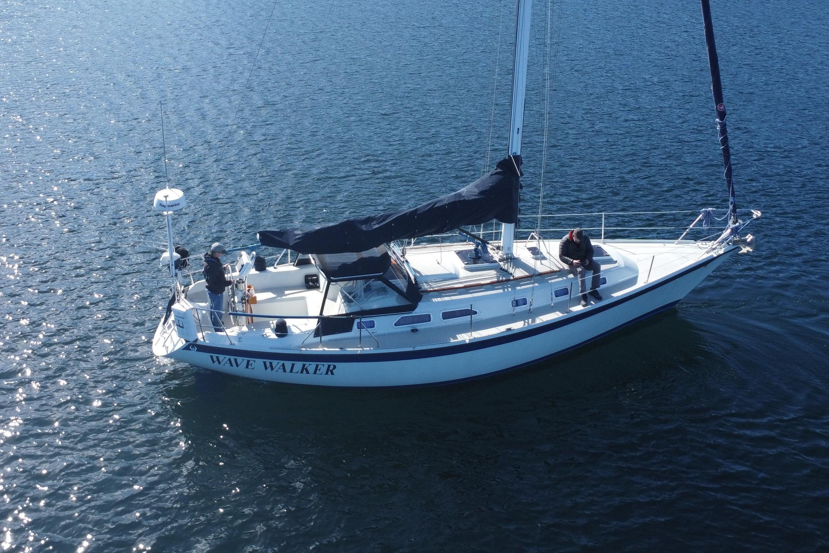 The Ericson 38-200 "Wave Walker" is a great all around cruiser that is easily handled by one or two people. Fast, safe and comfortable, she is well set up for a couple, two couples in two private staterooms, or a family. Her beautiful, varnished, all teak interior can sleep up to seven. The sail plan includes a roller furling genoa and fully battened mainsail with Tides Marine Strong Track with lazy jacks for ease of sail handling. All lines are led aft to self tailing winches in the cockpit. Both main(w/2 reefs) and 125% genoa were new in 2024. All electronics were replaced in 2019 with Raymarine HybridTouch with two repeaters to include plotter, radar, AIS, GPS, depth, wind, and autopilot. A new Standard Horizon VHF with RAM mic was installed at that time.