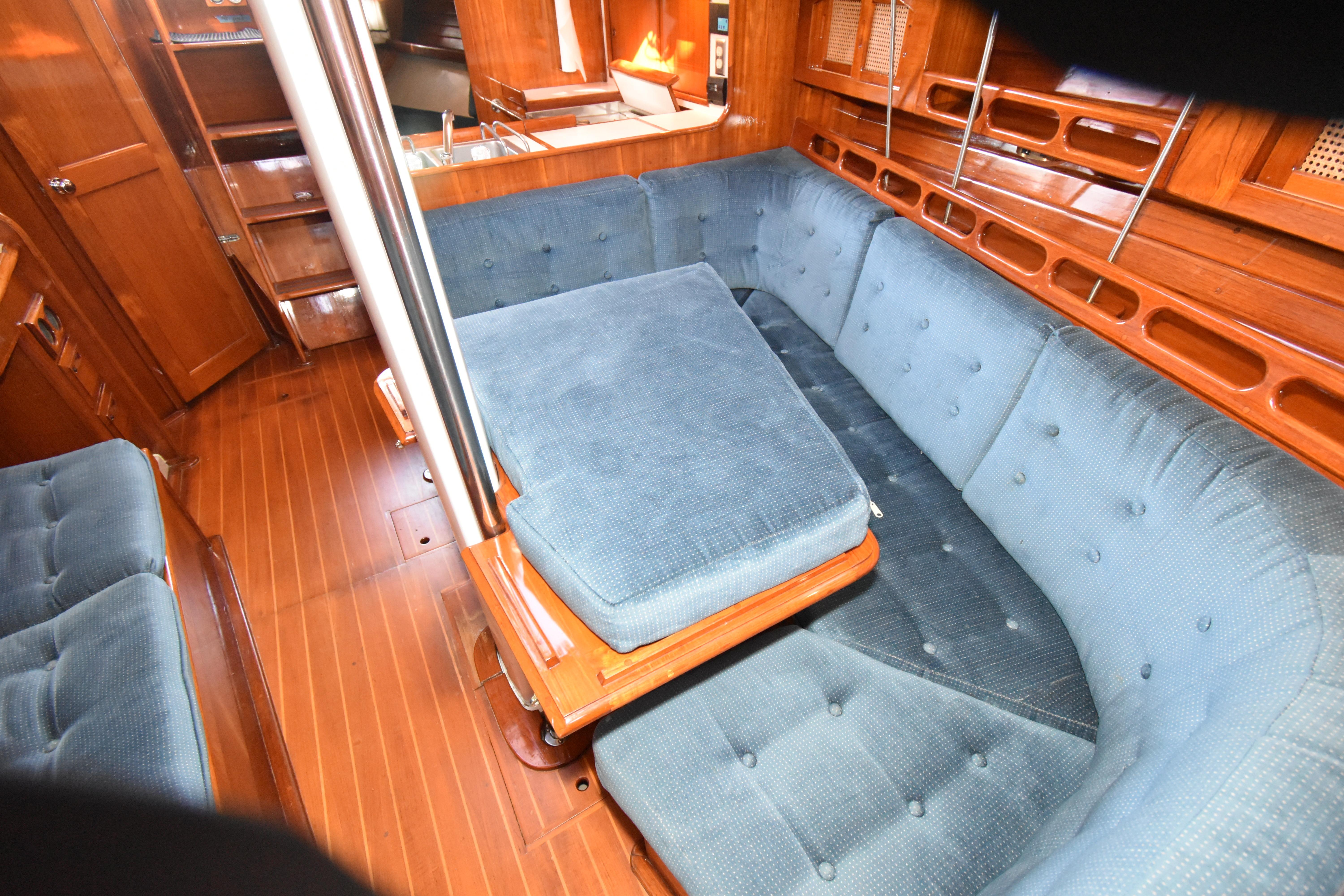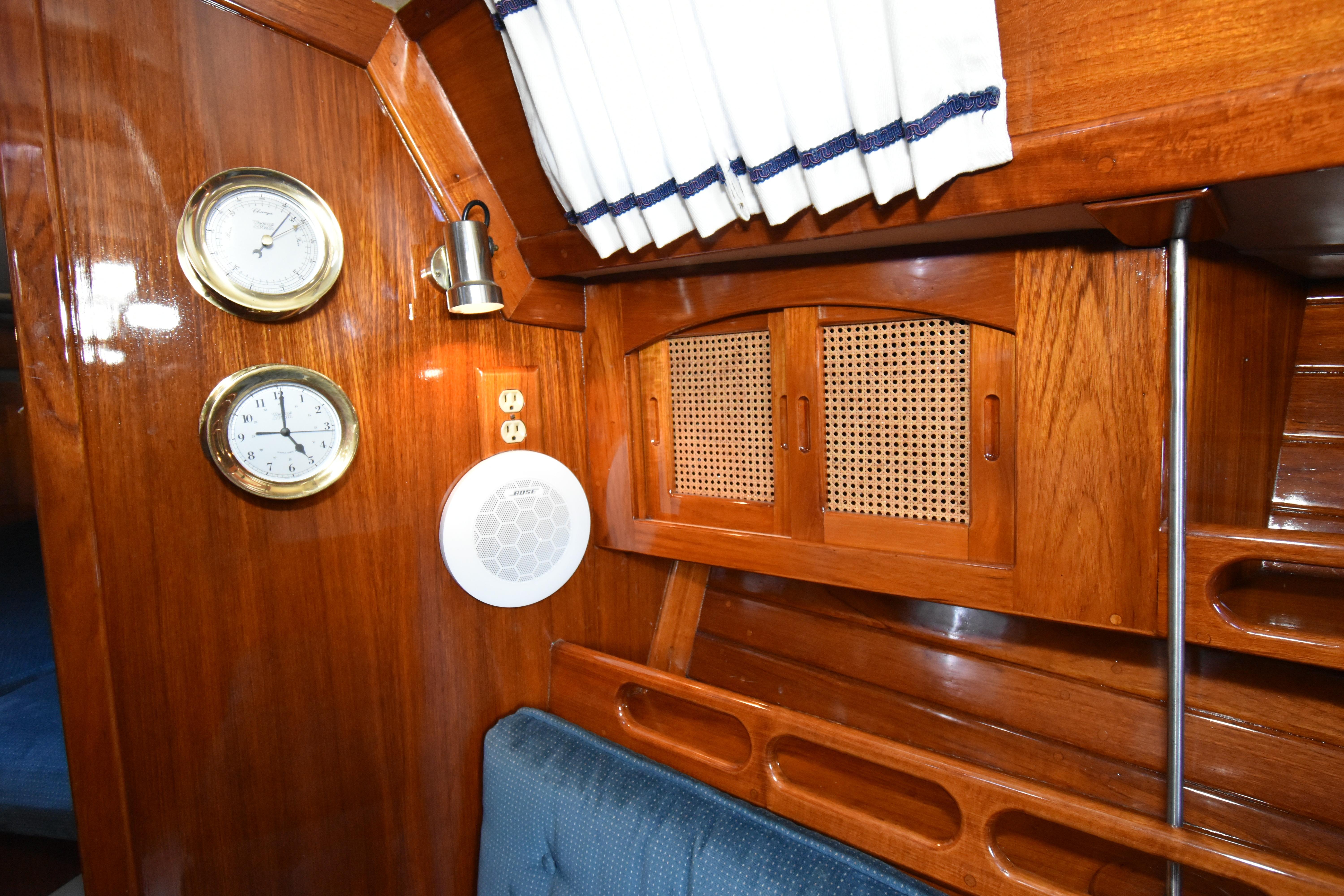 - All teak interior with beautiful custom gloss varnish and satin floorboards