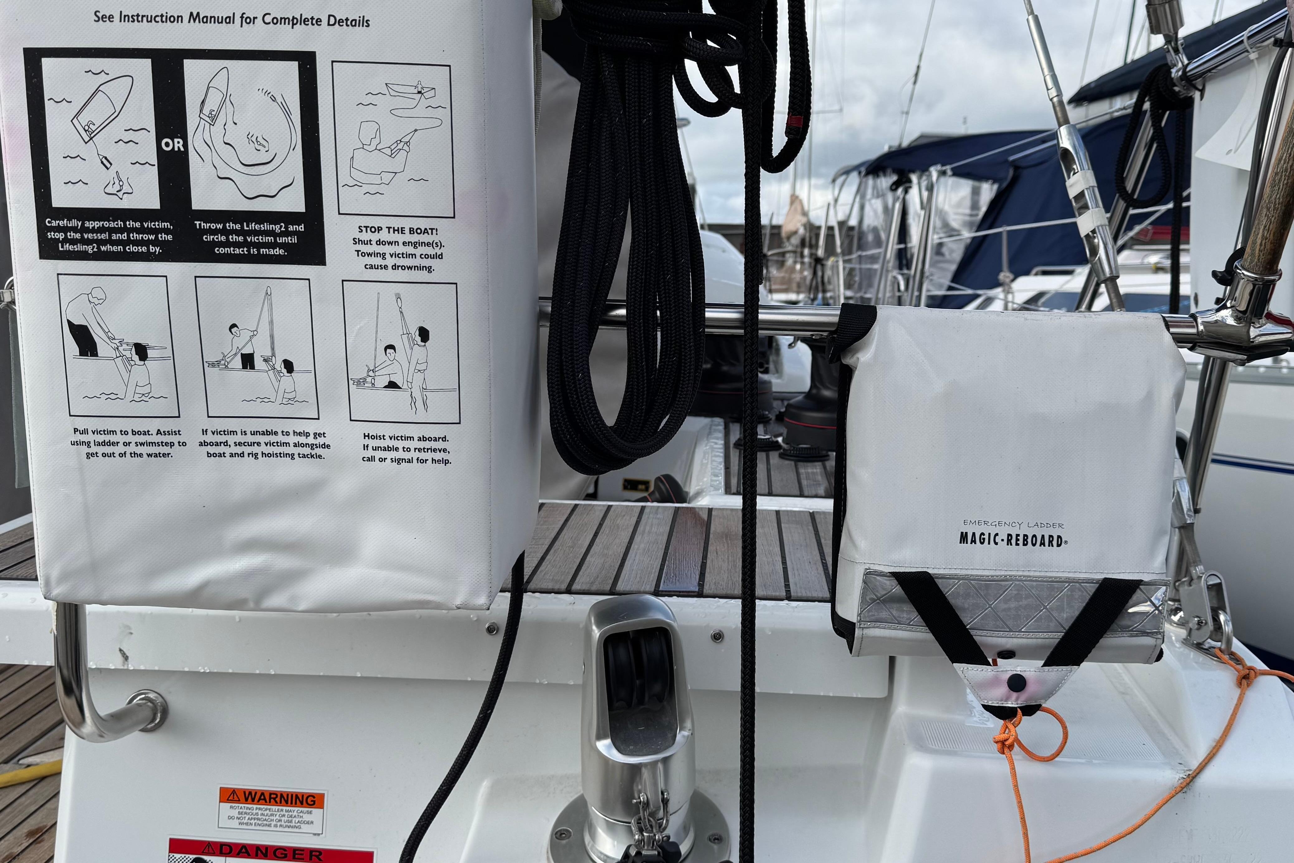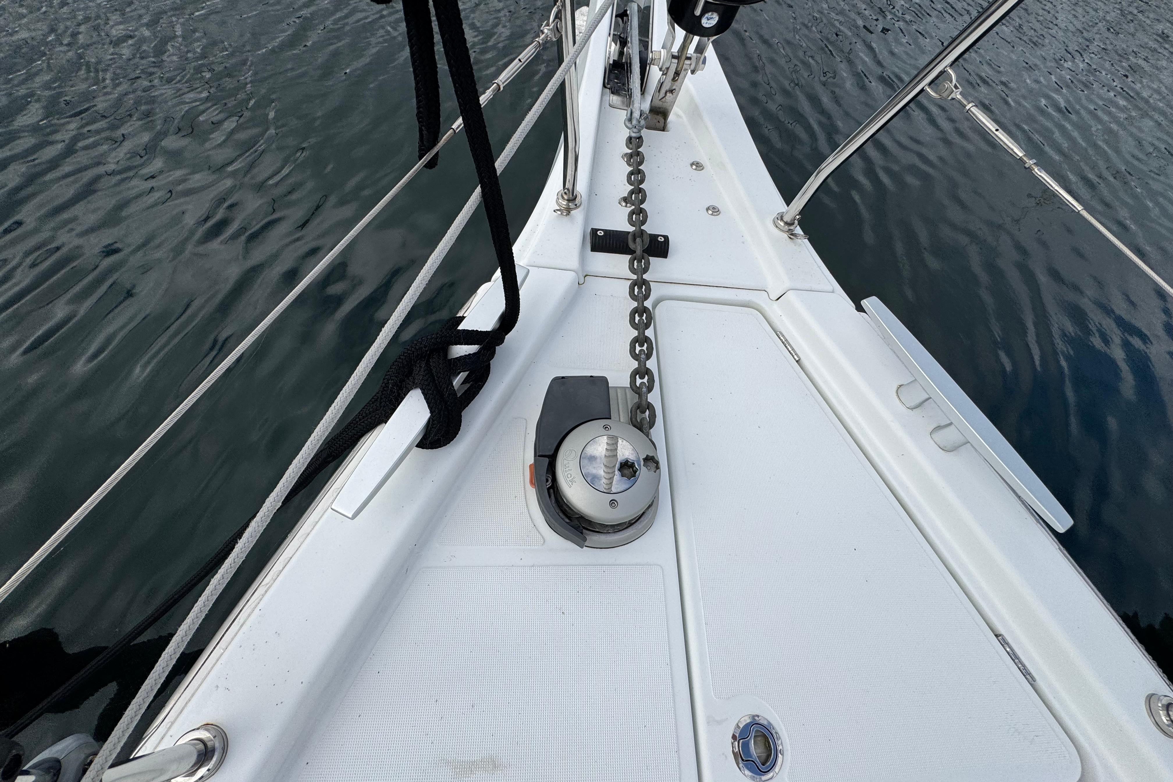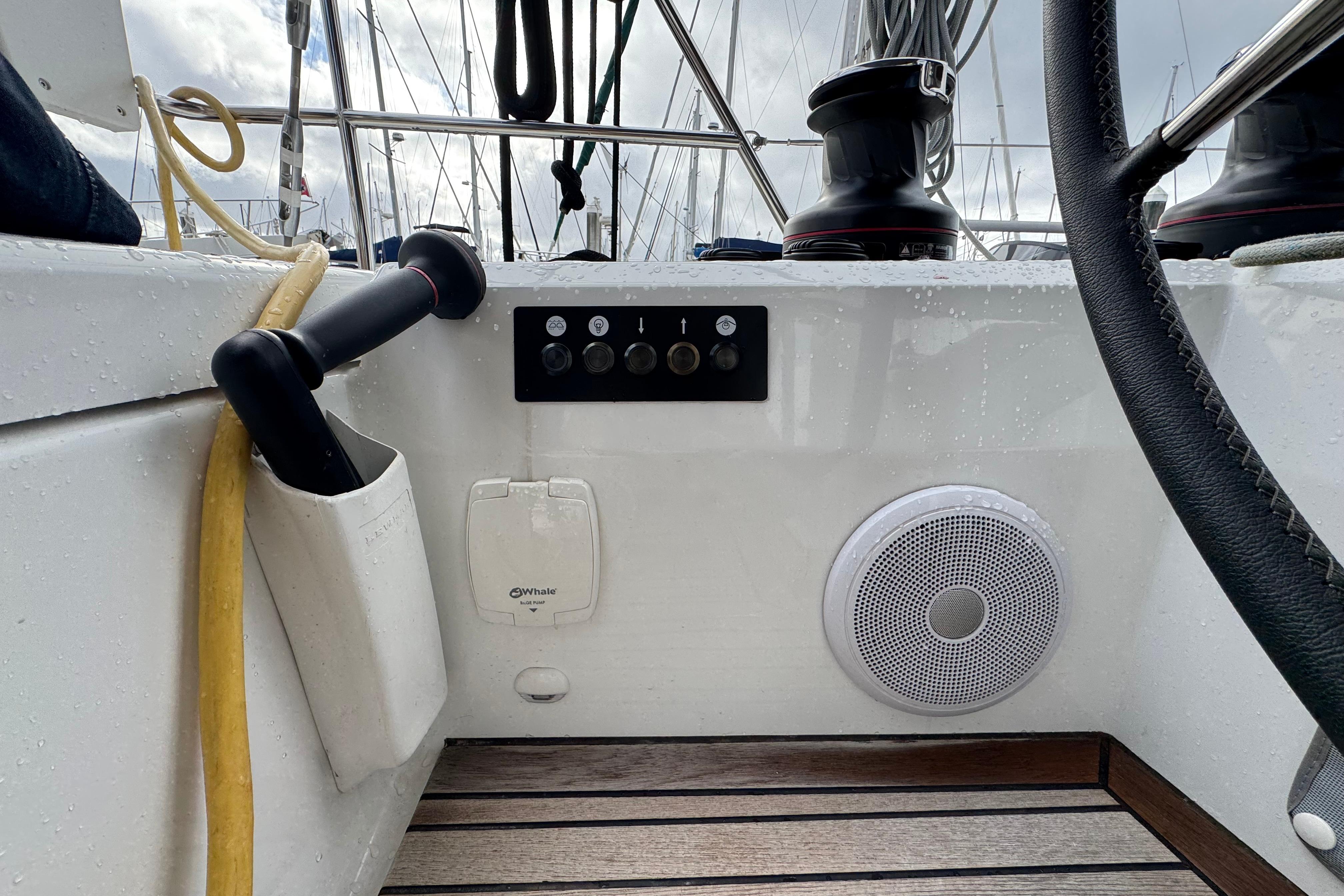 She is easy to handle and sail short handed with in mast furling, Harken electric winches, self tacking jib and bow thruster.