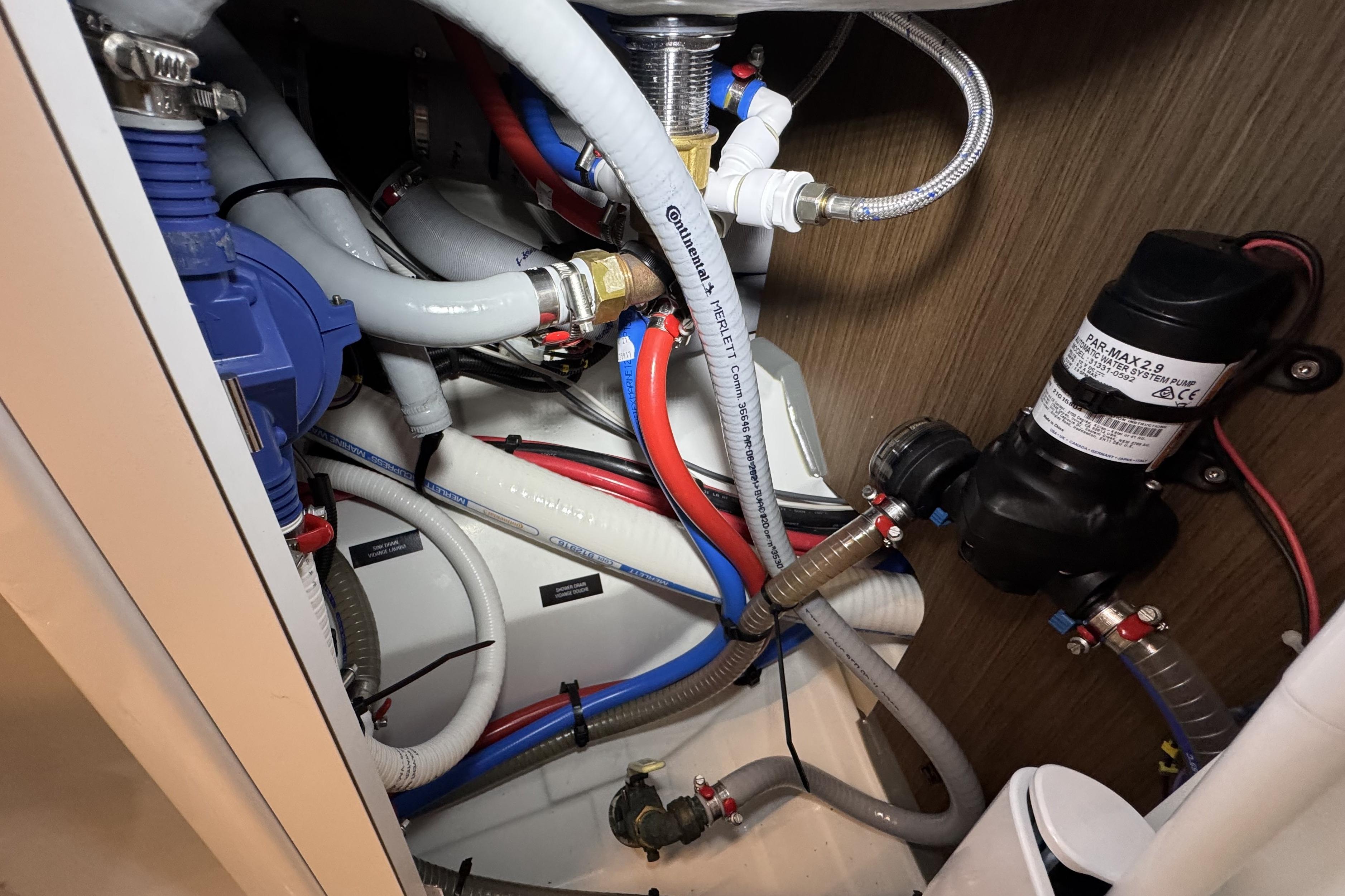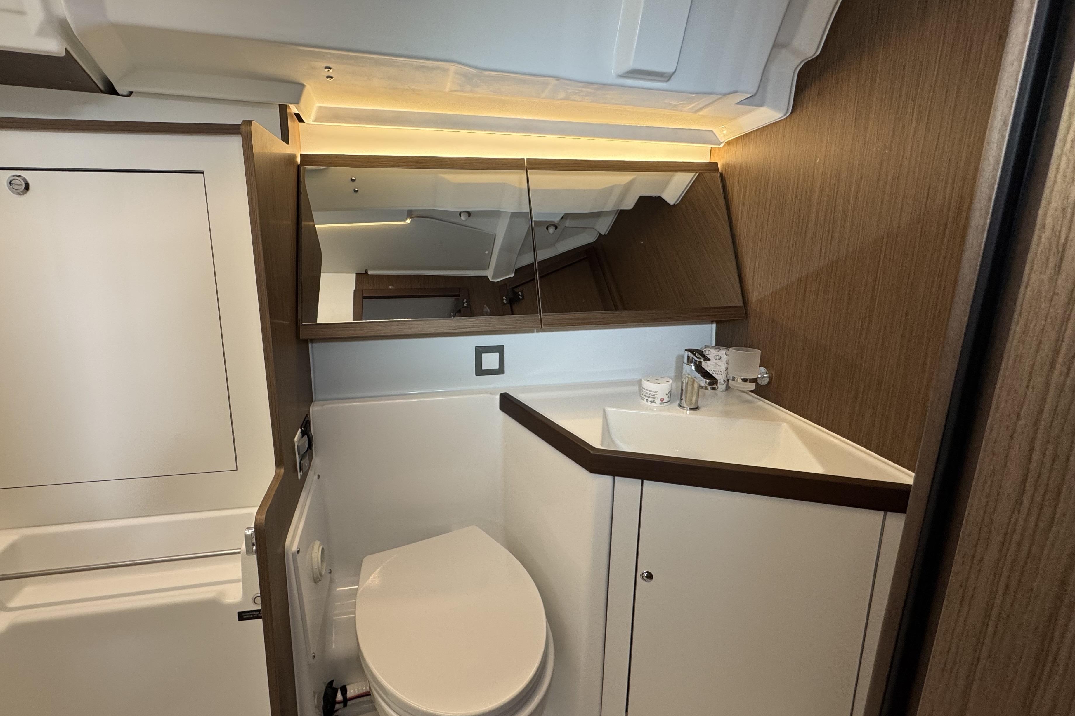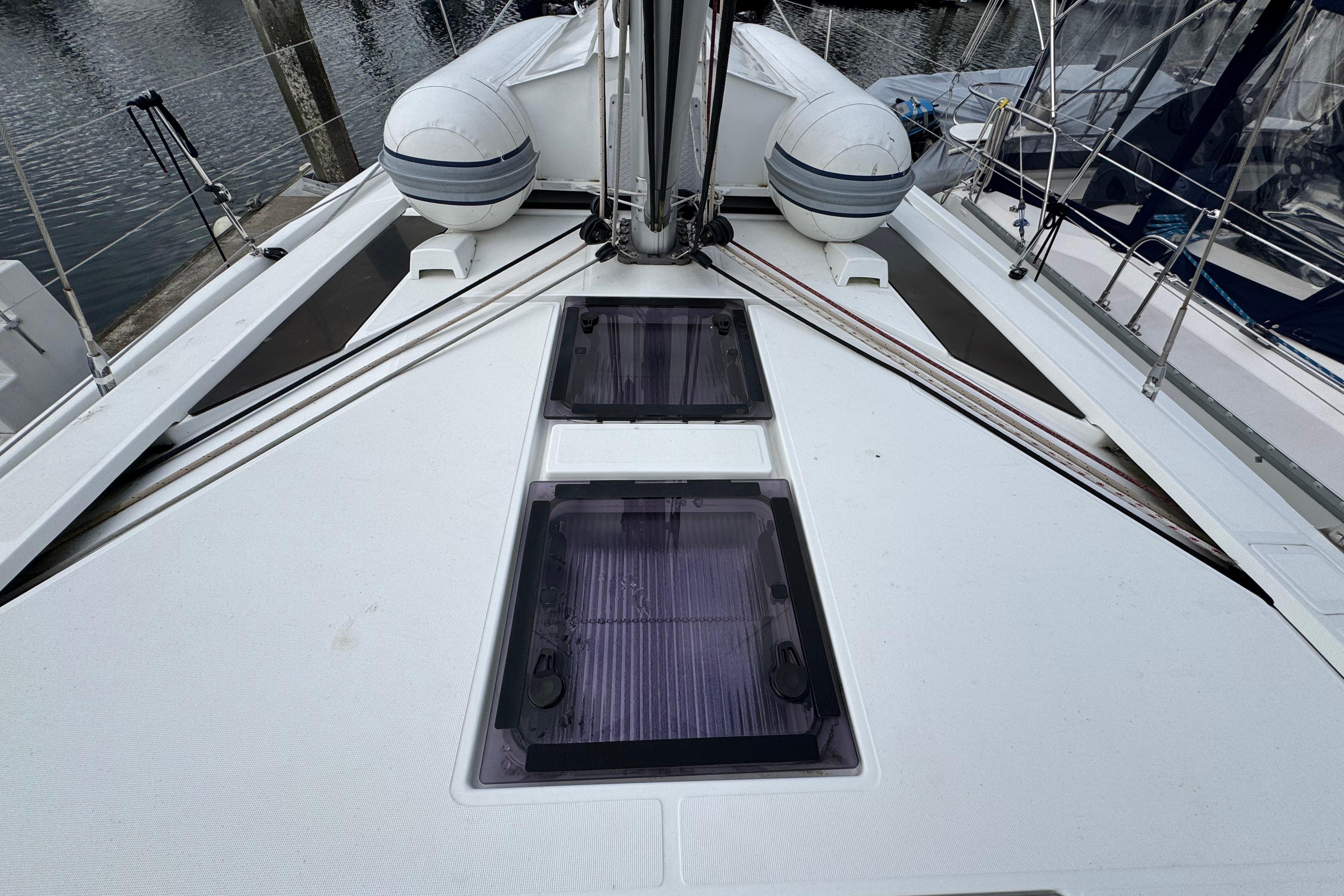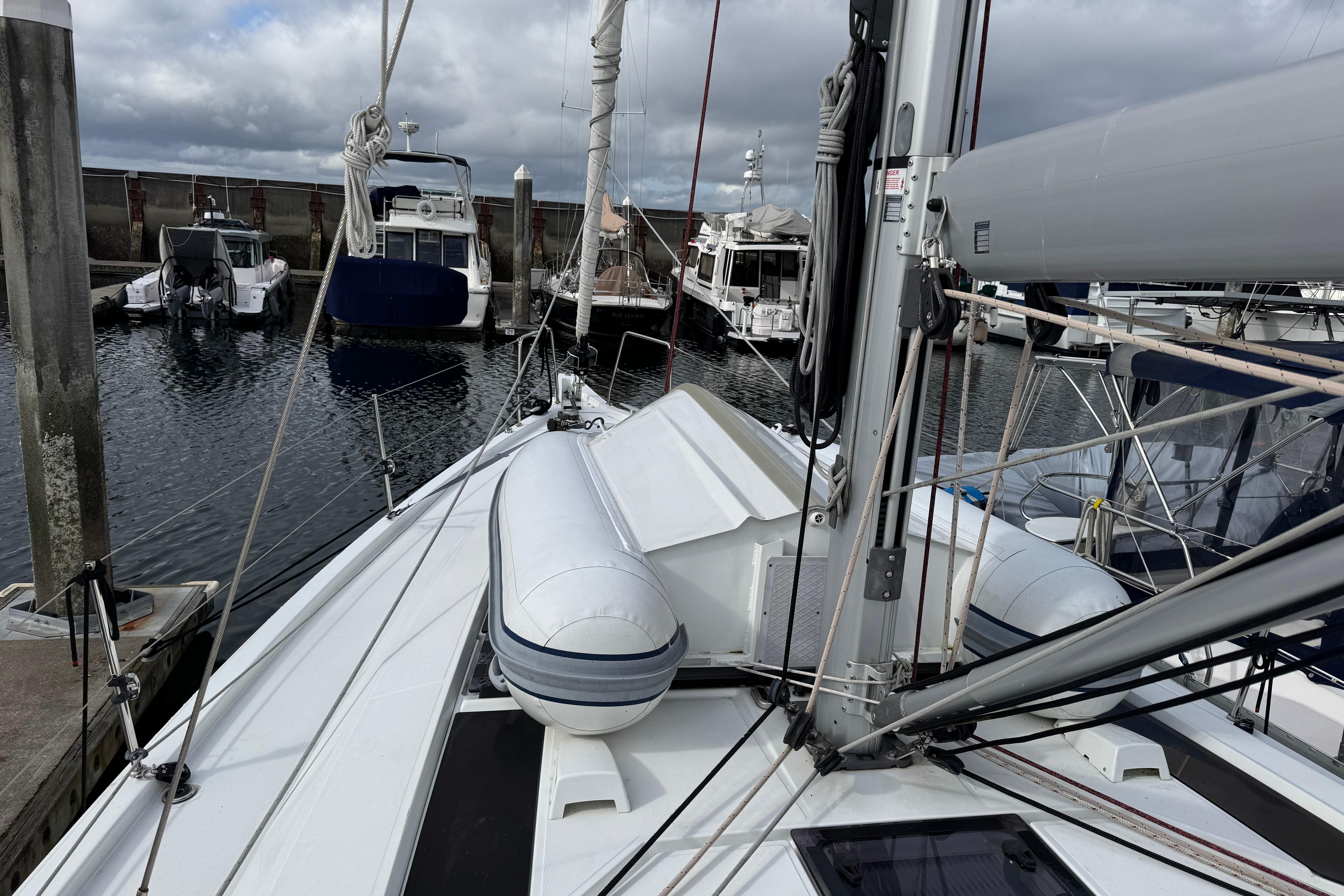She is easy to handle and sail short handed with in mast furling, Harken electric winches, self tacking jib and bow thruster.