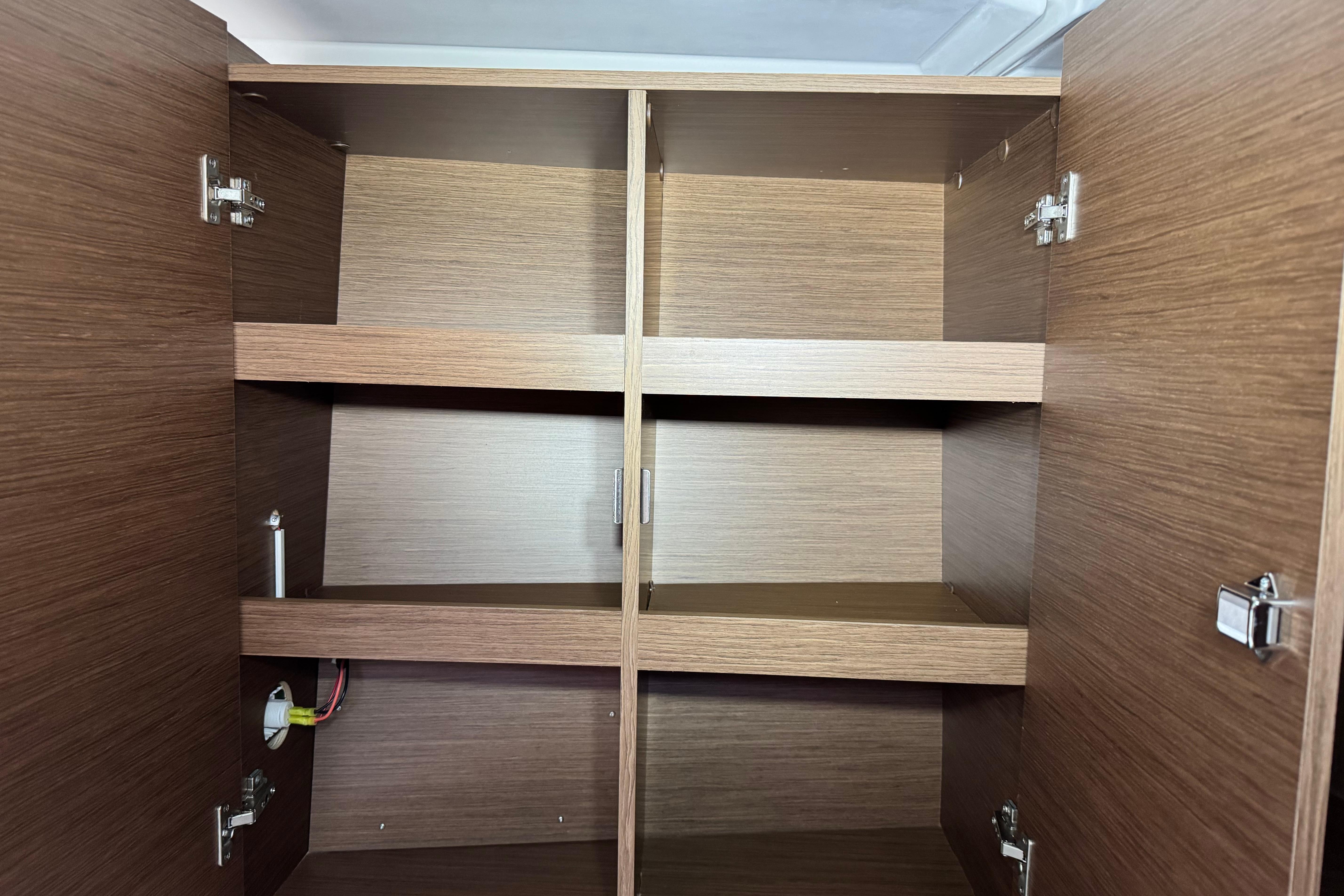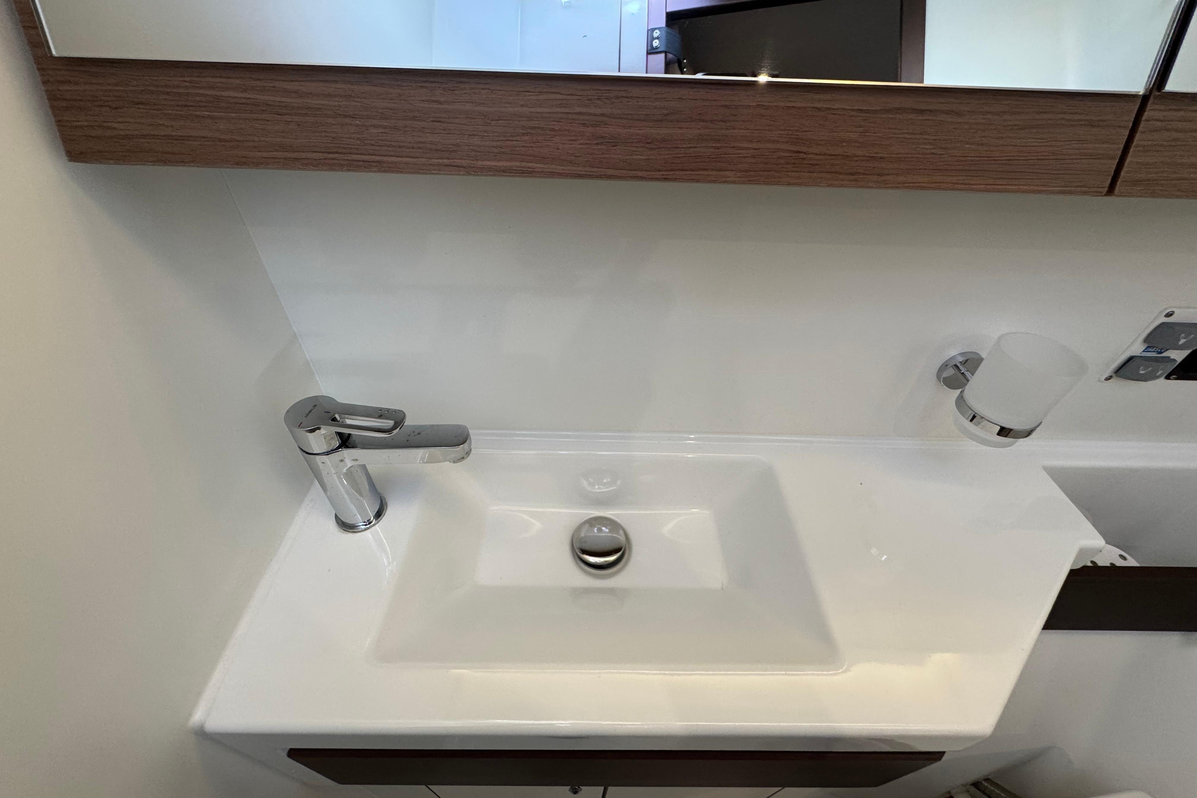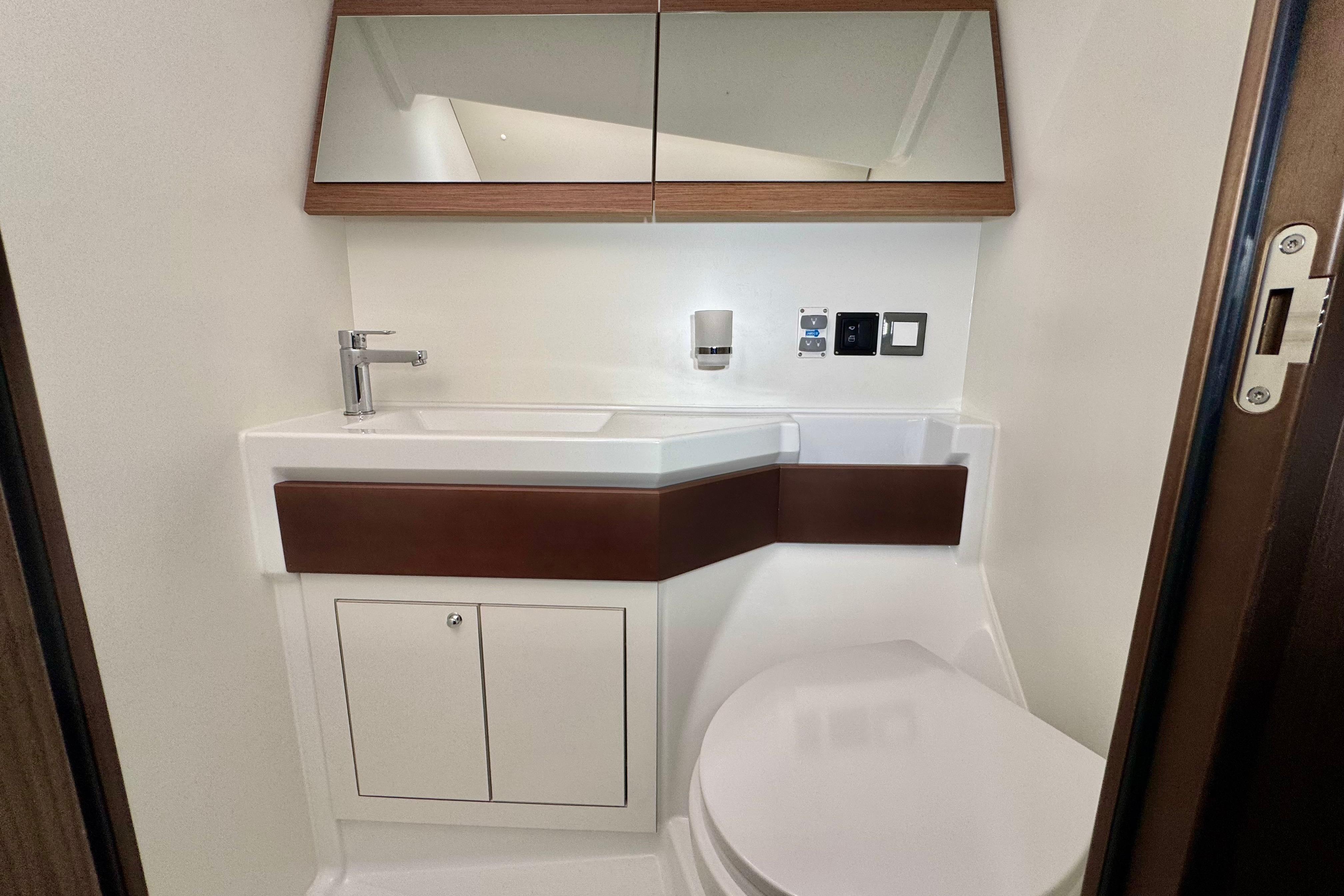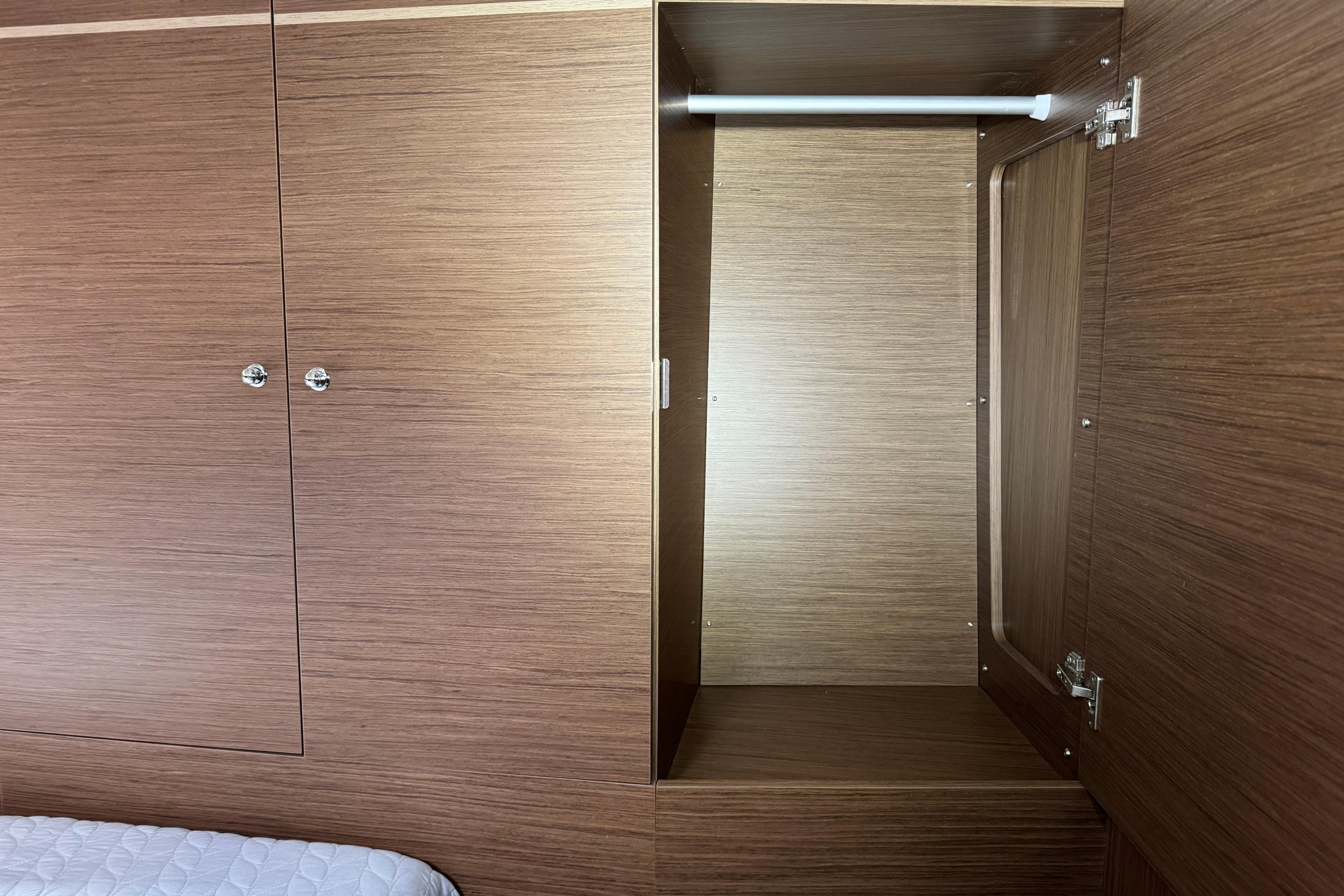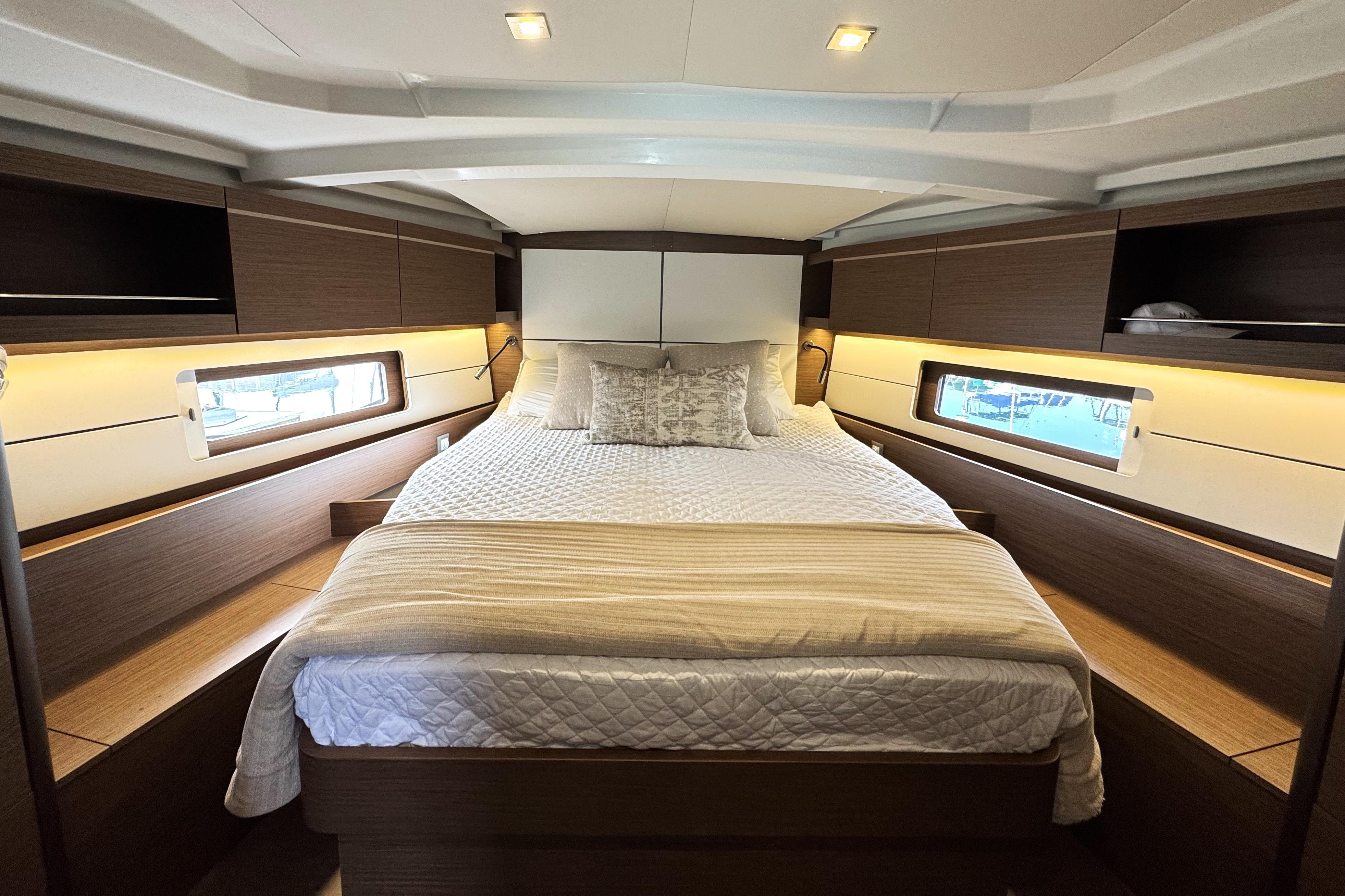 - Stylish centerline owners cabin with hanging lockers to port and starboard